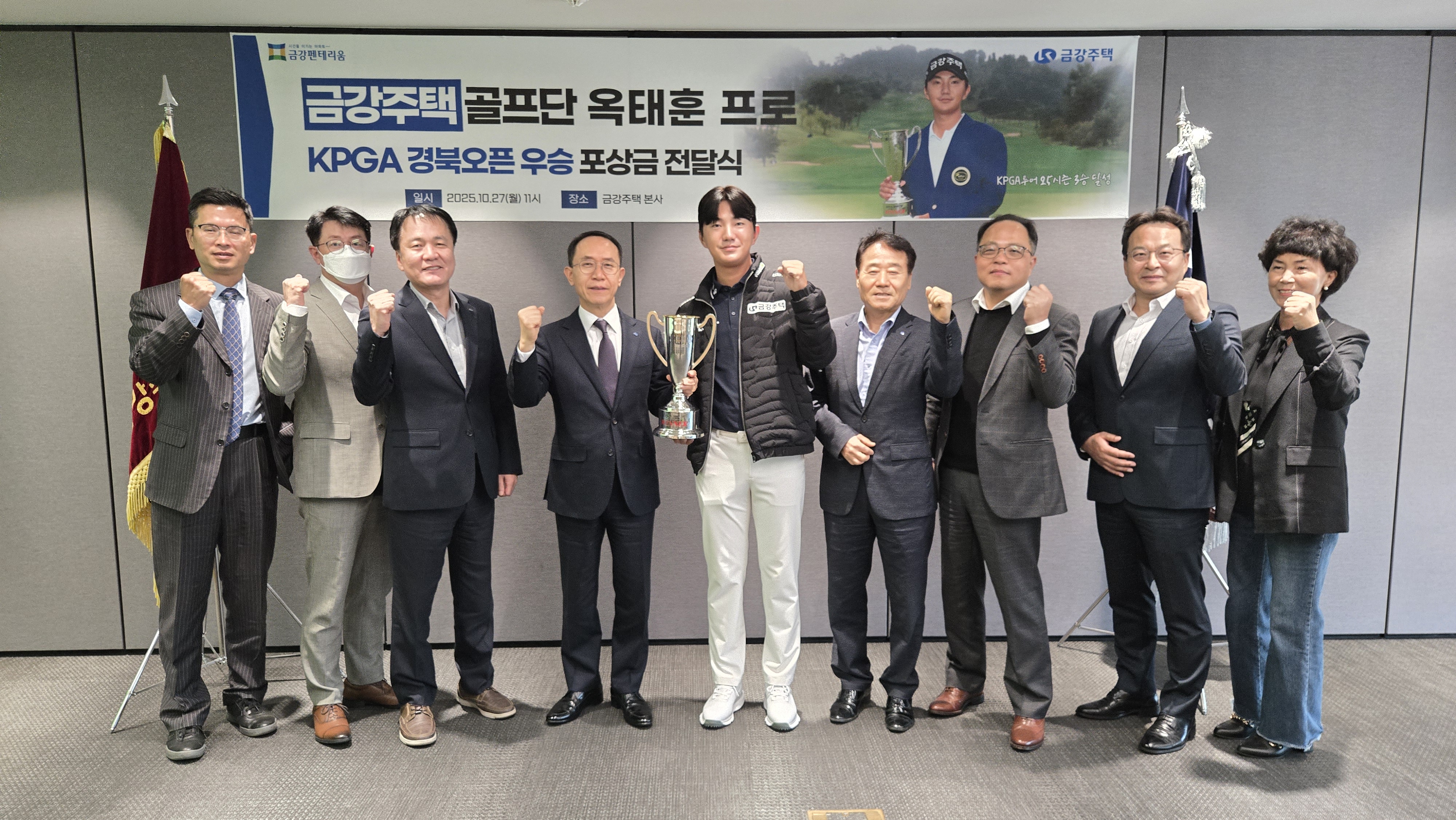 당사는 10월 27일(월) 11시, 본사 대회의실에서 금강주택 골프단 소속 옥태훈 프로의 ‘KPGA 경북오픈’우승을 축하하며 포상금 수여식을 개최했다.